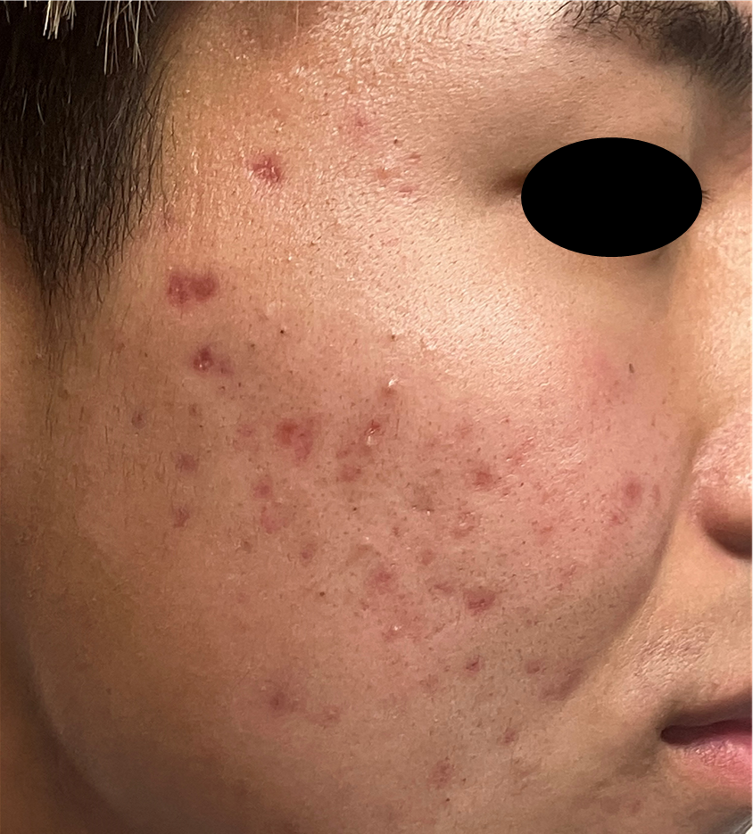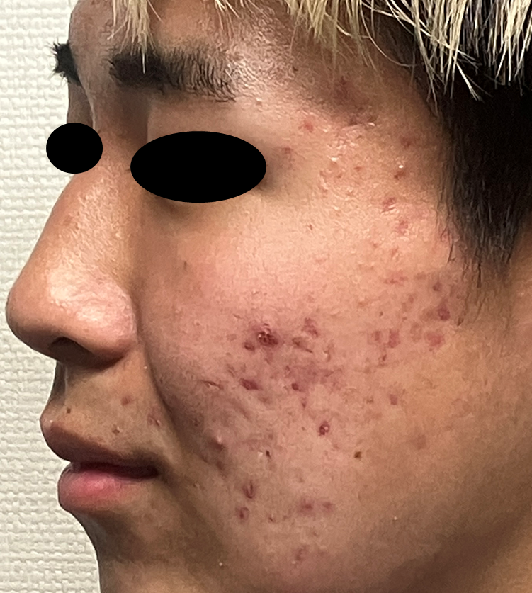 イソトレチノイン開始2か月後 新しいニキビができなくなり、赤みも減ります